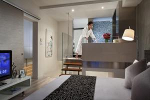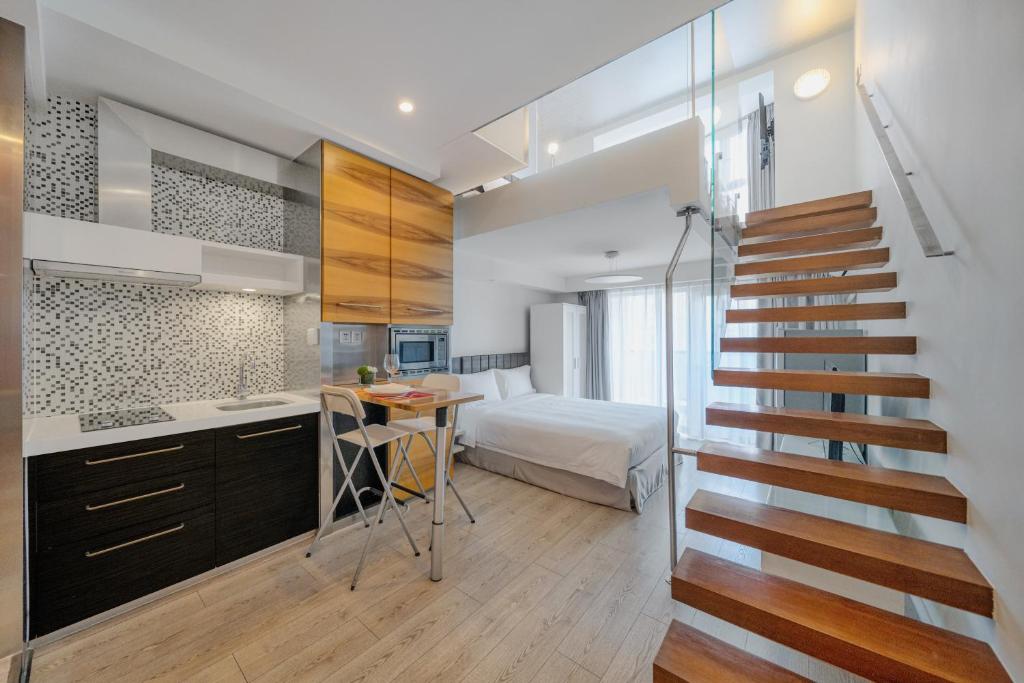 Artistic loft-style apartments and studios offer separate living areas fitted with an iPod dock, flat-screen TV offering cable channels. Cooking facilities and a microwave oven are provided. Housekeeping service is included.