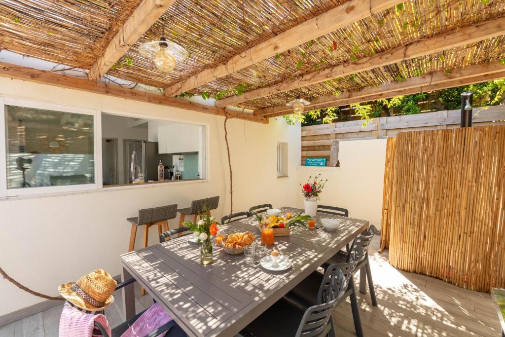 L’hébergement Mon Rêve, charmant cabanon les pieds dans l'eau à la Madrague, confortable et lumineux se situe à Hyères, à respectivement 31 km et 31 km de ces lieux d’intérêt : Gare de Toulon et Zénith Oméga de Toulon. Vous pourrez pratiquer le vélo dans les environs. Cet hébergement est installé à quelques pas de : Plage de l’Ermitage. Il possède une terrasse et un parking privé gratuit.