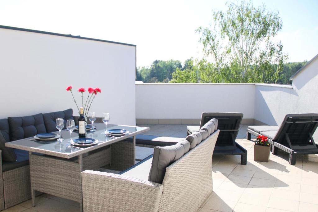 The spacious apartment features 2 separate bedrooms, 1 bathroom, a fully equipped kitchen with a dining area and dishwasher, and a living room with a flat-screen TV. Towels and bed linen are available in the apartment. The property has an outdoor dining area.
