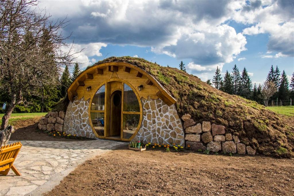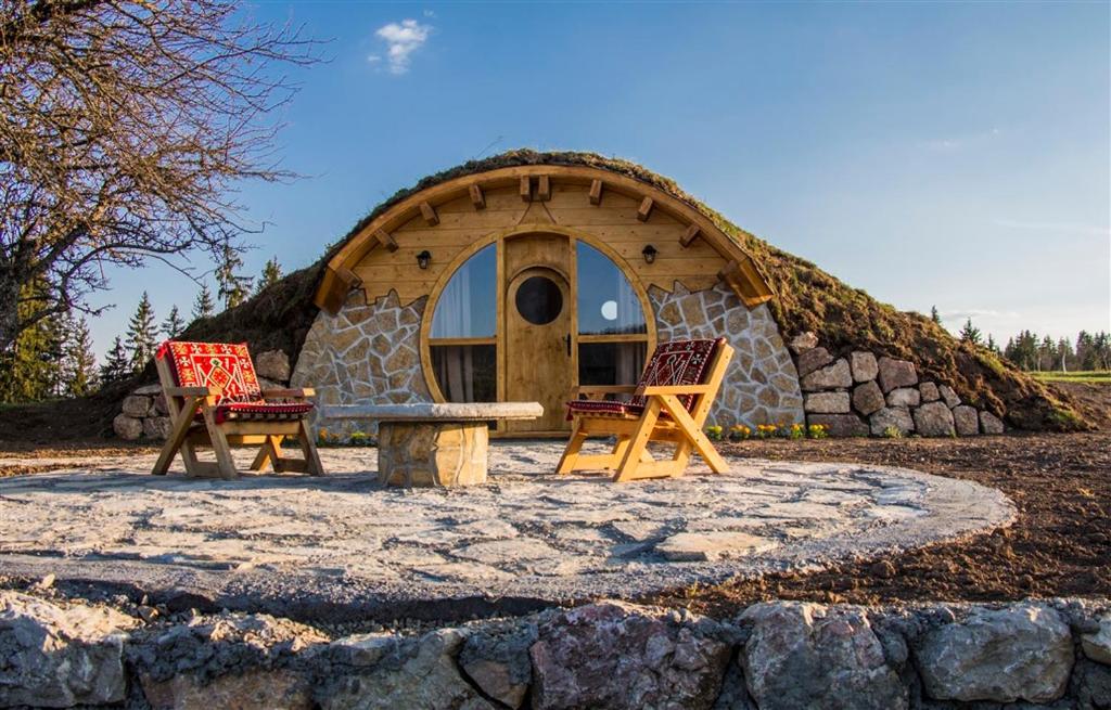 Providing mountain views, Mountain bungalows and a Hobbit House - Jazavčije Rupe in Han Pijesak provides accommodation, a garden, a terrace, a bar, ski-to-door access and barbecue facilities. Both WiFi and private parking are available at the lodge free of charge.