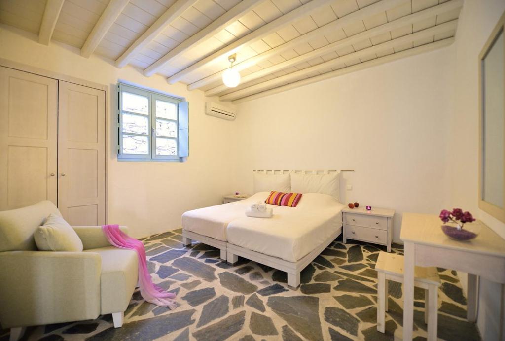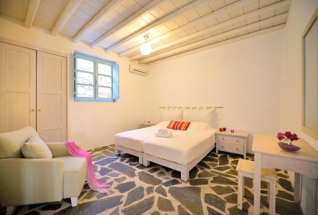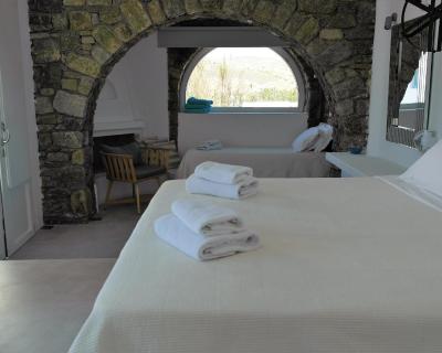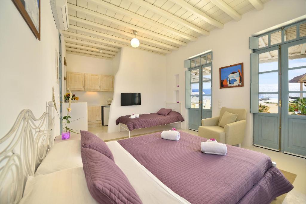 Vous pourrez déguster des plats grecs traditionnels sur place. Vous trouverez des bars et des cafés à 200 mètres. Situé à seulement 2 km, le village d’Ano Mera compte des tavernes et des restaurants.