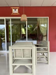 On the ground floor of the guesthouse is a restaurant serving popular burgers, "Mythai Burgers."