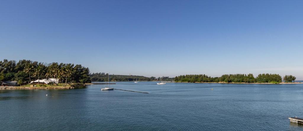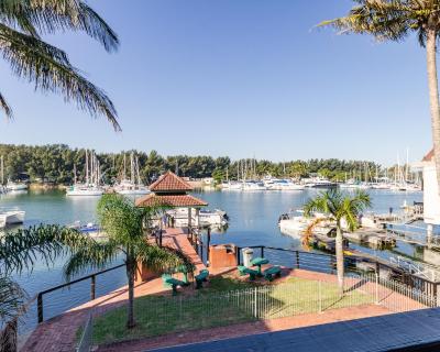 Boasting lake views, Mzingazi Waterfront Accommodation, On The Bay Waterfront Villa's features accommodation with a private beach area, pool with a view and a garden, around 5 km from Richards Bay Country Club. This beachfront property offers access to a balcony, free private parking and free WiFi. Featuring family rooms, this property also provides guests with an outdoor fireplace.