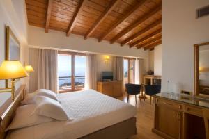 The traditionally Greek restaurant enjoys a sea view veranda. The lobby bar also boasts a spectacular view over the coast, as well as an open fire for the colder months.