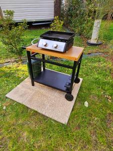 The campground with a terrace and garden views features 2 bedrooms, a living room, a flat-screen TV, an equipped kitchen with an oven and a microwave, and 1 bathroom with a shower. The property has an outdoor dining area.