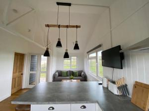 Dieses Chalet mit 1 Schlafzimmer ist versehen mit einem Wohnzimmer mit einem TV, einer voll ausgestatteten Küche mit einem Kühlschrank und einem Geschirrspüler sowie 1 Badezimmer mit einem Haartrockner. In diesem Chalet werden Handtücher und Bettwäsche zur Verfügung gestellt.