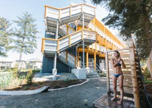 The resort offers several amenities, including two takeout / outdoor dining options, The Beach Shack Cafe and Surfside Grill, onsite Nordic saunas by Tuff City Saunas, onsite massage and bodywork at By The Sea, plus bike rentals at Tofino Bike, and surf lessons and rentals by Surf Sister.