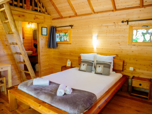 Équipée de son perchoir qui permet de prendre de la hauteur jusqu'à la canopée des arbres environnants, cette cabane perchée ravira les petits comme les grands ! Avec 2 niveaux, sa capacité d'accueil de 5 personnes en fait une cabane dans les arbres familiale par excellence. Les couples et les amateurs de chasse ne seront pas en reste avec une Palombière clin d’œil aux traditions du sud Gironde