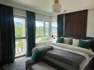 The spacious apartment with a terrace and mountain views features 2 bedrooms, a living room, a flat-screen TV, an equipped kitchen with a dishwasher and an oven, and 2 bathrooms with a walk-in shower. Towels and bed linen are provided in the apartment. The property has an outdoor dining area.