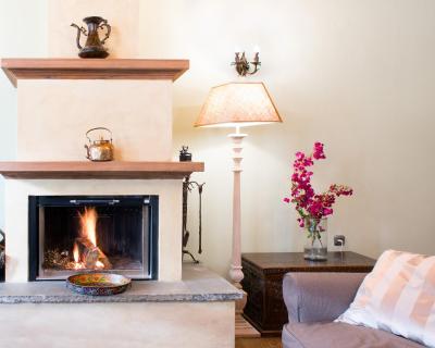 Opening to a patio with views of the mountain, each house at Papigo Villas boasts 2 bathrooms. Each features a spacious living room with a fireplace and sofa. A fully equipped kitchen fitted with a large dinning table is available in every house.