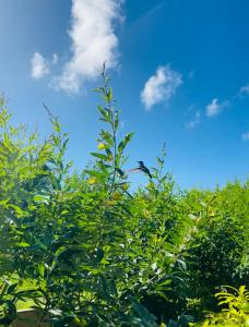 The holiday home with a terrace and garden views features 1 bedroom, a living room, a flat-screen TV, an equipped kitchen with an oven and a microwave, and 1 bathroom with a walk-in shower. The accommodation is non-smoking.