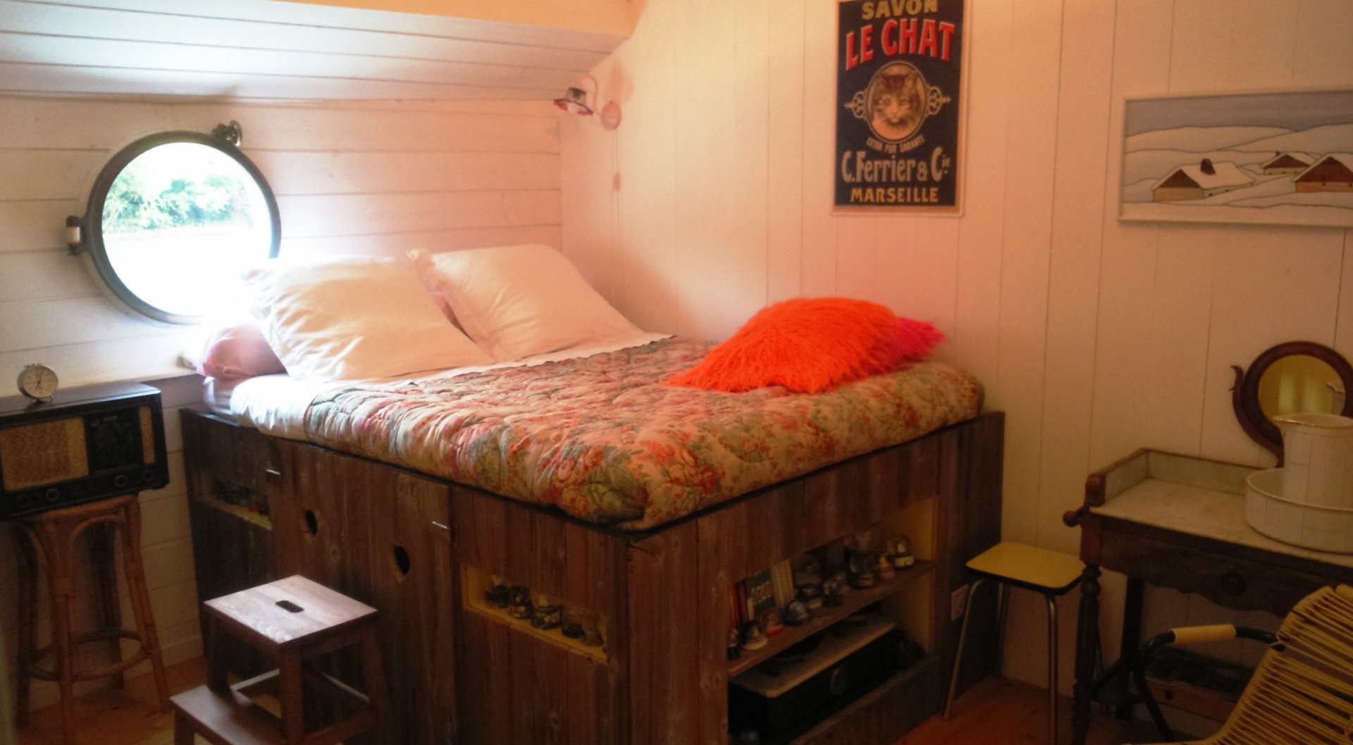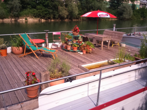 Nous louons la plus grande partie de la péniche, l'ancienne cale de chargement aménagée : cuisine - séjour - salon - bureau/bibliothèque, 3 chambres (+ 2 couchages au salon), salle d'eau avec baignoire et douche, terrasse panoramique avec vue sur la rivière et la citadelle Vauban (patrimoine UNESCO).