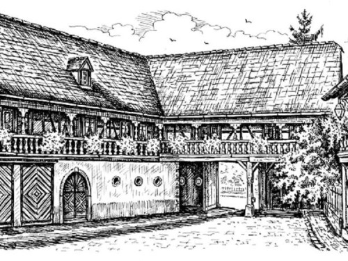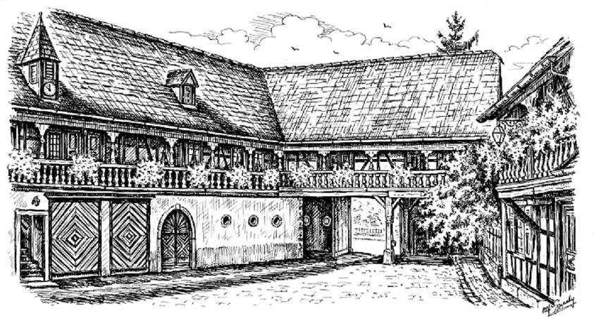 La cour de la famille Michel a servi de décors au tableau de Charles SPINDLER l'artiste peintre alsacien, qui a immortalisé le "Hans im Schnockeloch" de la légende.
