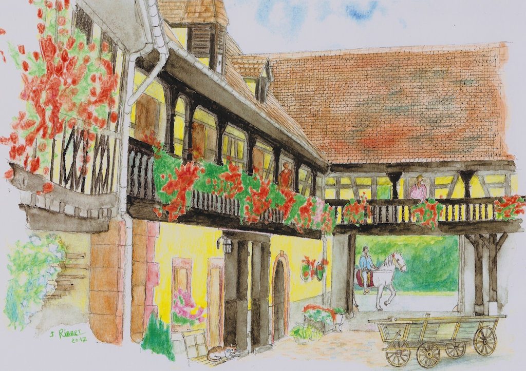Le gîte est installé dans une ferme alsacienne du XVIIIème siècle, à l'étage d'une demeure indépendante du propriétaire, disposant de grands balcons fleuris et du calme d'une grande cour ensoleillée.