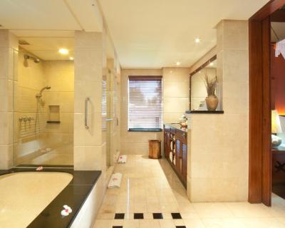 All villas are spacious, with designer furnishings, exotic fabrics and Indonesian woodcarvings. Cool, cream-colored marble features throughout. The villas are also equipped with a private sundeck, hot tub and bathroom facilities.