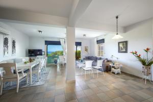 The villa features 4 bedrooms, 2 bathrooms, bed linen, towels, a flat-screen TV with satellite channels, a dining area, a fully equipped kitchen, and a terrace with sea views. A private entrance leads guests into the villa, where they can enjoy some wine or champagne. The property has an outdoor dining area.