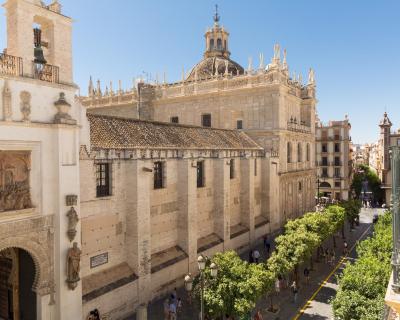 This duplex apartment on Calle Alemanes has 2 bedrooms both with balconies and views of the Cathedral. It has 2 bathrooms (one with hydromassage shower), a lounge with double sofa bed and a kitchen and dining area. Private elevator access to the apartment. The apartment also has 2 private furnished terraces overlooking the Cathedral and the Giralda.