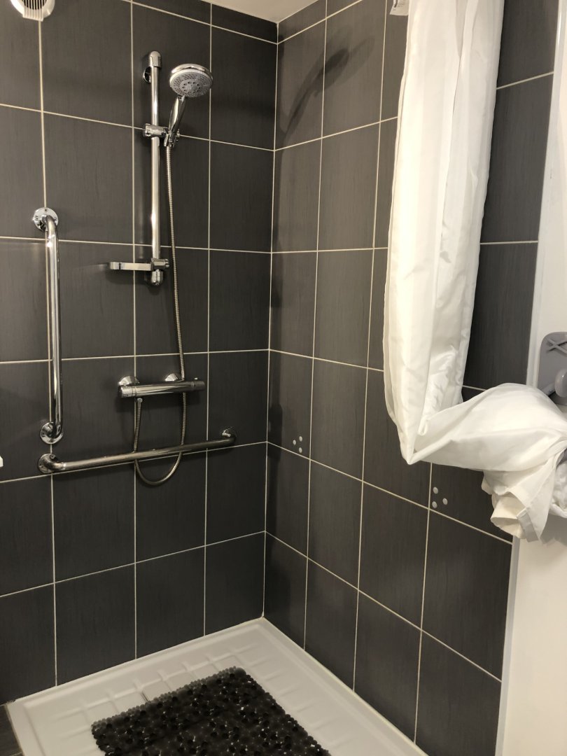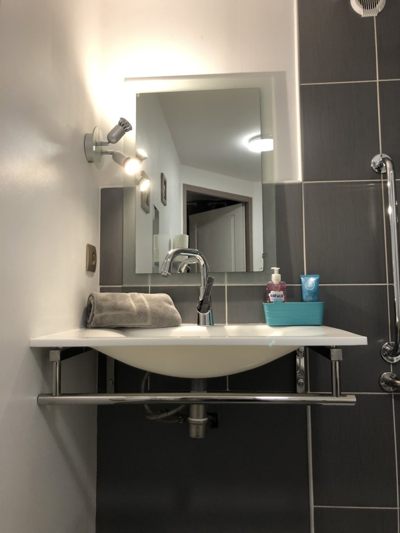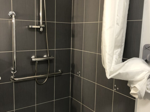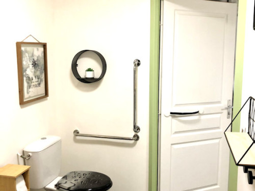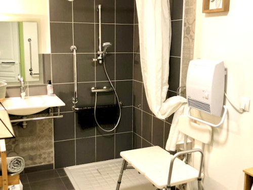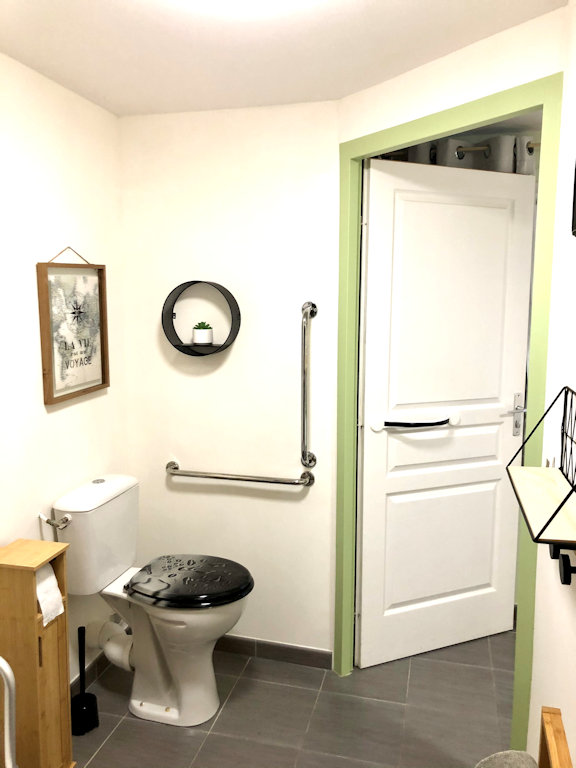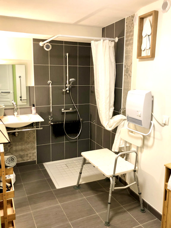 Notre fils se regale, avec mon fauteuil roulant tout est ok la salle de bain avec douche et tres bien et la decoration tres bien aussi on se sent comme a la maison