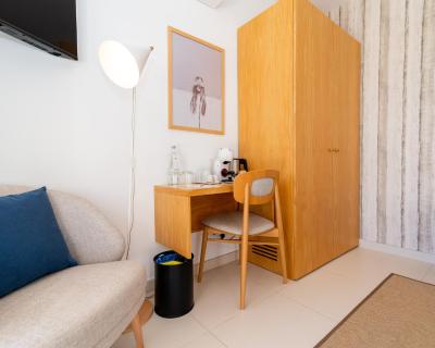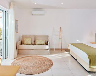 All units are bright and include a furnished terrace, some with sea view. The studios have an equipped kitchenette. All have a private bathroom with a bathrobe, free toiletries and a hairdryer. All the rooms situated on the new building have views of the sea, safe, minibar, bathrobe, slippers, free toiletries, hairdryer and pool towel.