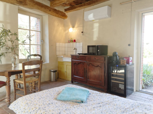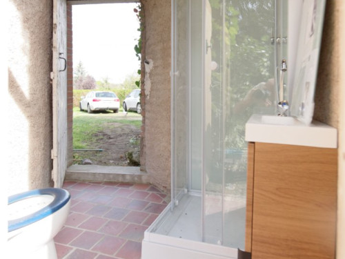 Une salle de bain/WC privative est accessible à l'extérieur du logement.
