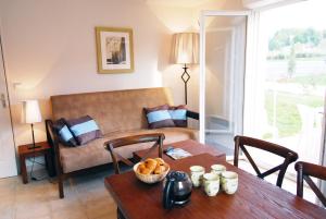 The self-catering apartments at Le Hameau de la Vézère have a private terrace and garden. After a long day at the river, guests can relax in the seating area, watching TV.