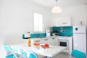 Vous pourrez préparer vos repas dans la cuisine entièrement équipée avec un réfrigérateur, un four et un lave-vaisselle. Vous pourrez ensuite savourer vos plats dans le coin repas sur la terrasse ou à l’intérieur.