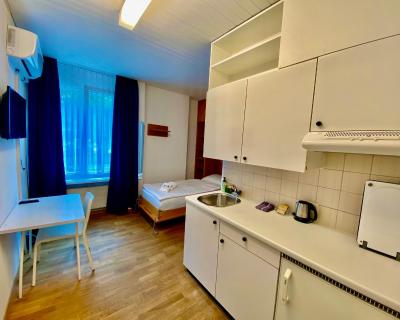 Ce studio comprend une kitchenette entièrement équipée, une connexion Wi-Fi gratuite et une télévision par câble.