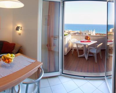 Doté d'un balcon avec vue sur la mer, chaque appartement est équipé d'une télévision par satellite à écran plat et d'une kitchenette avec four micro-ondes et réfrigérateur. La salle de bains privative est pourvue d'une douche ou d'une baignoire.