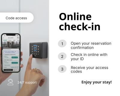 Our online check-in process requires guests to fill out personal information and upload a government-issued ID before arriving at the property. Guests will receive their personal access code once the online check-in is completed.