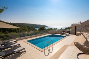Die Unterkunft SEAFRONT VILLA for 10 people! besticht durch klimatisierte Übernachtungsmöglichkeiten mit einem eigenen Pool, Meerblick sowie einer Veranda / Patio und ist in Milna gelegen. Diese Unterkunft direkt am Strand bietet Zugang zu einer Terrasse, Tischtennis, einem kostenlosen Privatparkplatz und kostenlosem WLAN.
