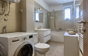The apartment has 2 bedrooms, a flat-screen TV with satellite channels, an equipped kitchen with a dishwasher and a fridge, a washing machine, and 1 bathroom with a shower.