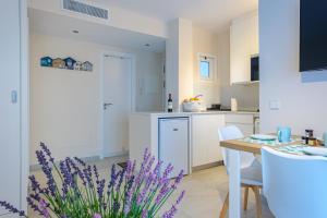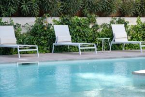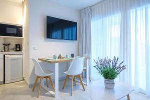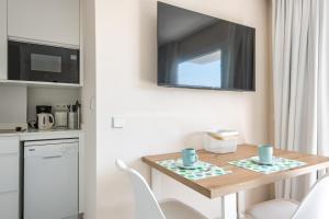 The apartment is equipped with 1 bedroom, 1 bathroom, bed linen, towels, a flat-screen TV with satellite channels, a dining area, a fully equipped kitchen, and a terrace with pool views.