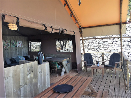 Aux Quatrefeuilles d'Oc, un magnifique domaine de vacances avec 5 gîtes et 3 tentes lodge luxueuses dans un grand parc méditerranéen de 3 hectares. Un endroit calme en pleine nature avec une vue imprenable sur la vallée de Lodève et les montagnes environnantes. Le terrain est agrémenté par de nombreux murs en pierres sèches et donne à chaque gîte une situation unique et un décor intime.
