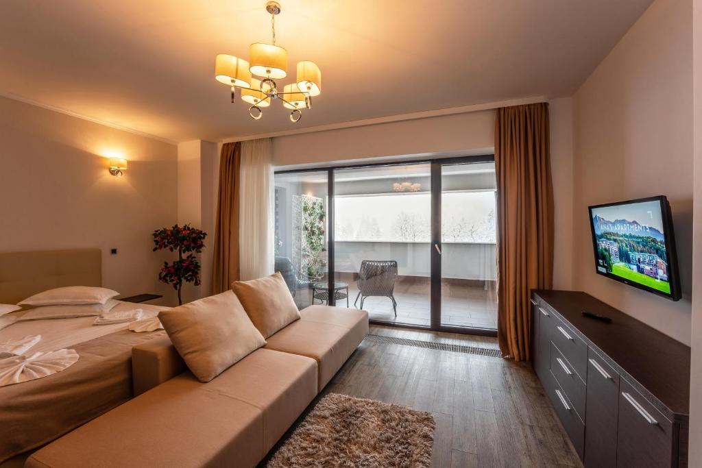 SILVER MOUNTAIN - ANA'S Apartments, a property with a garden, is located in Poiana Brasov, 10 km from The Black Tower, 11 km from Council Square, as well as 12 km from Dino Parc. The property features mountain and garden views, and is 10 km from The White Tower. There is a children's playground and guests can make use of free WiFi, free private parking and an electric vehicle charging station.