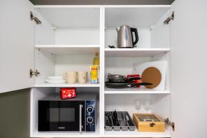 Chaque hébergement dispose d’un coin salon, d’une télévision à écran plat et d’un lave-linge. Vous bénéficierez également d’une kitchenette entièrement équipée comprenant un réfrigérateur, ainsi que d’une salle de bains privative comportant une douche et des articles de toilette gratuits. Un micro-ondes et une plaque de cuisson sont également à votre disposition, de même qu’une machine à café et une bouilloire.