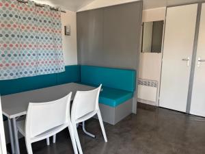 Une kitchenette équipée d’un réfrigérateur, d’un micro-ondes et d’une plaque de cuisson est également présente dans certains logements.