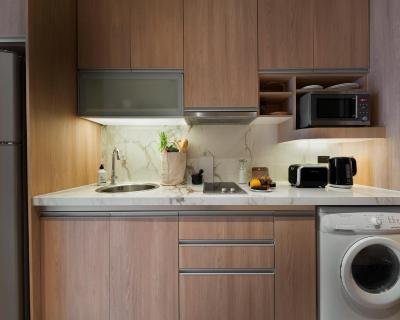 Each room at the Somerset Sukhumvit Thonglor Bangkok features separate living and dining areas. Amenities include a LCD TV with satellite channels, DVD player, washing machine and dryer.