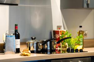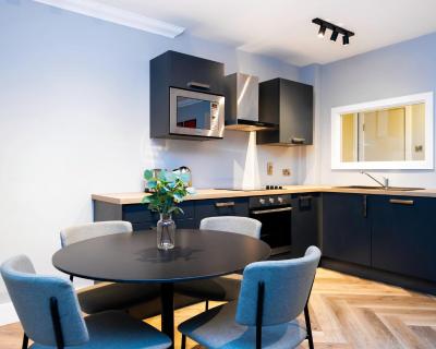 Tous les appartements disposent d’une cuisine moderne équipée d’un four intégré, de plaques de cuisson et d’un micro-ondes pour vous permettre de préparer vos repas. Un réfrigérateur et un lave-linge/sèche-linge sont également à votre disposition.