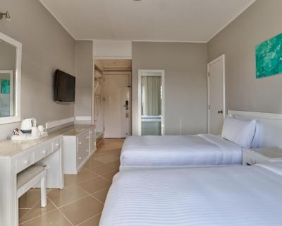 L'hôtel est situé en 2e ligne, avec plage privée à 700 mètres.