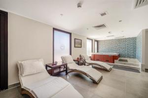 Vous pourrez faire de l’exercice à la salle de sport ou pratiquer diverses activités sur place ou dans les environs, comme la plongée sous-marine et d’autres sports nautiques. L’établissement compte aussi un souk, un parcours de golf de 9 trous et un parc aquatique certifié avec une rivière lente.