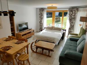 The apartment has 1 bedroom, 1 bathroom, bed linen, towels, a flat-screen TV with streaming services, a dining area, a fully equipped kitchen, and a terrace with mountain views. This apartment also features a patio that doubles up as an outdoor dining area. For added privacy, the accommodation has a private entrance and soundproofing.