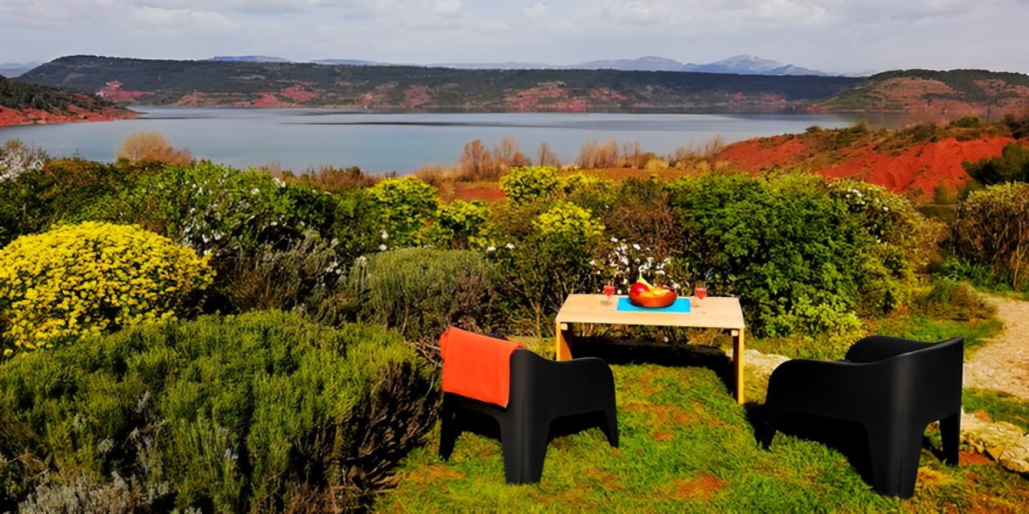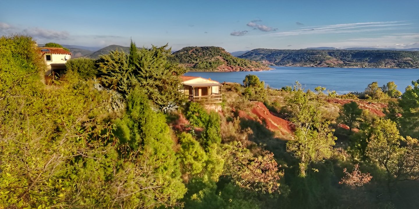Nous proposons 4 gîtes à la location sur une propriété de 3900 m² avec une vue exceptionnelle sur le Lac du Salagou.