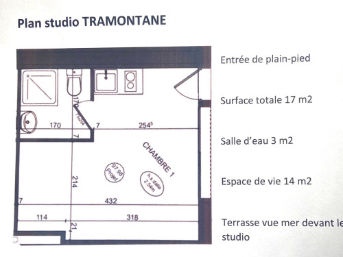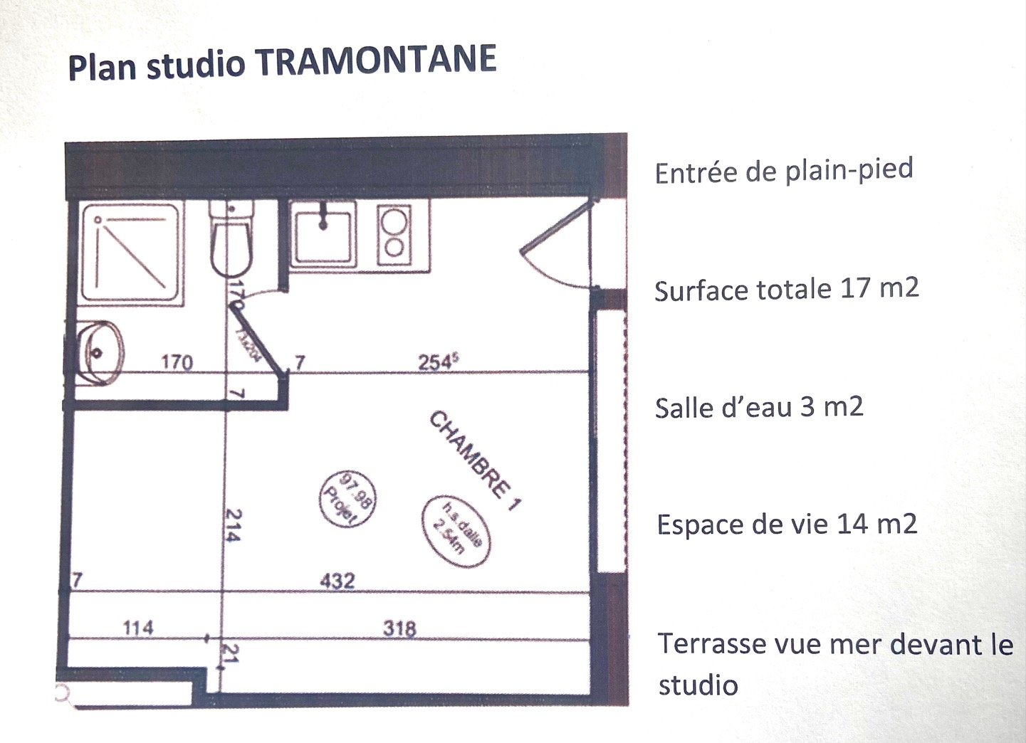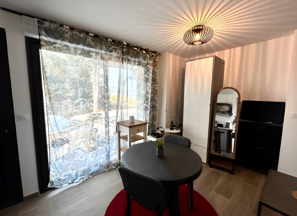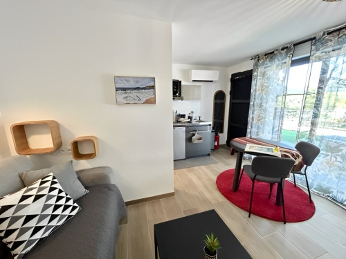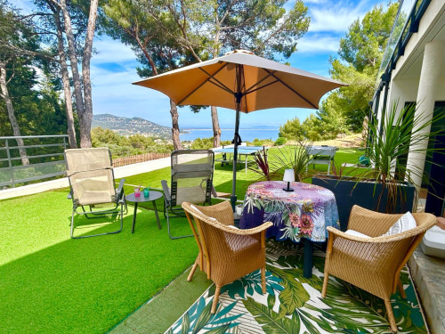 Studio neuf confortable climatisé de plain pied avec terrasse jardin vue mer.