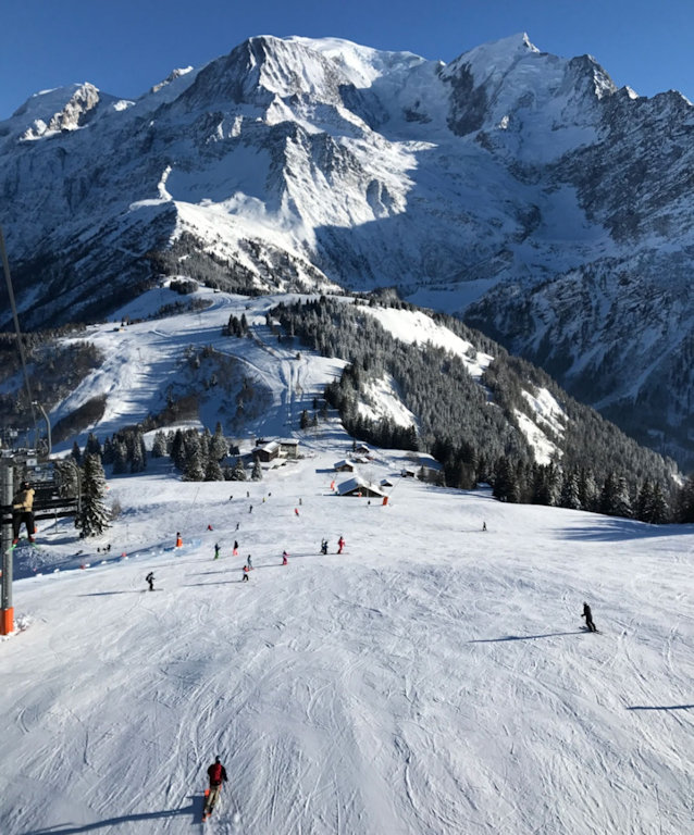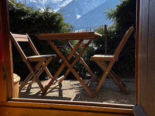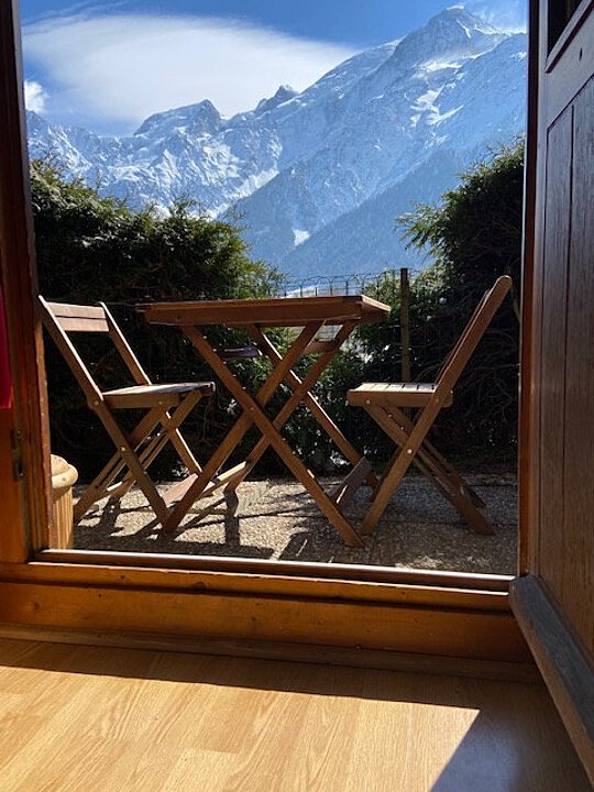 Sa baie vitrée donne sur une agréable terrasse face au Mont Blanc et l'aiguille du Midi.