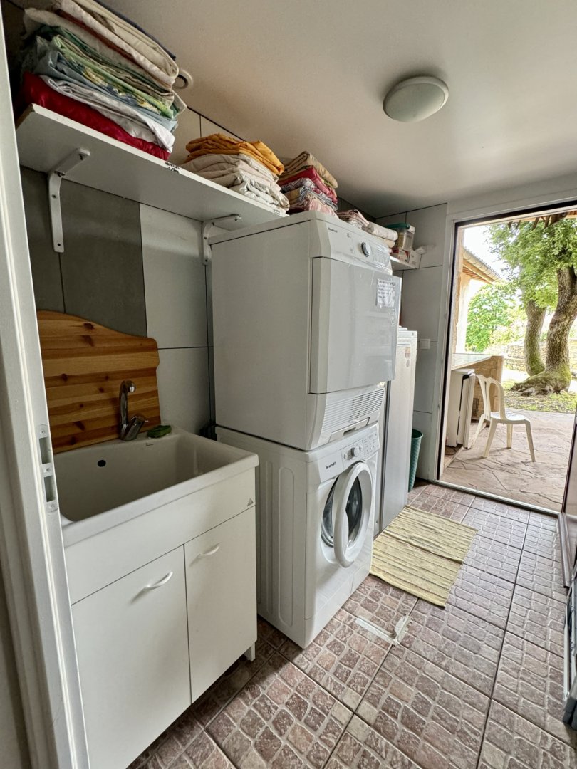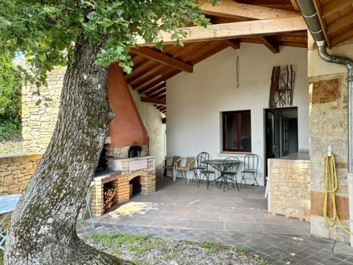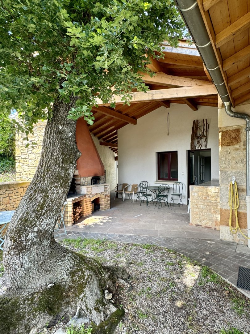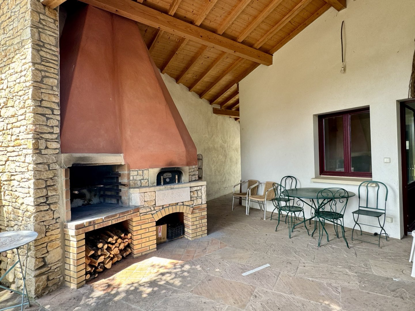 Une terrasse et coin repas / barbecue et four à pizza à côté du salon et de la cuisine pour passer de bons moments conviviaux.