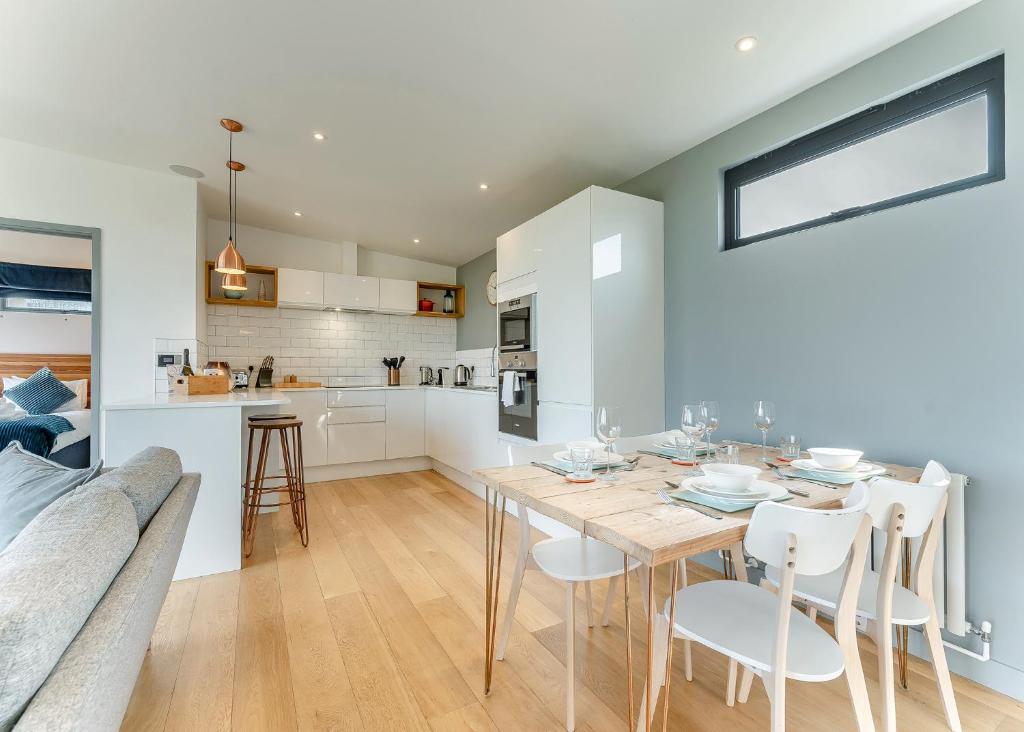 Une cuisine équipée d’un réfrigérateur, d’un lave-vaisselle et d’un four est également présente dans certains logements.