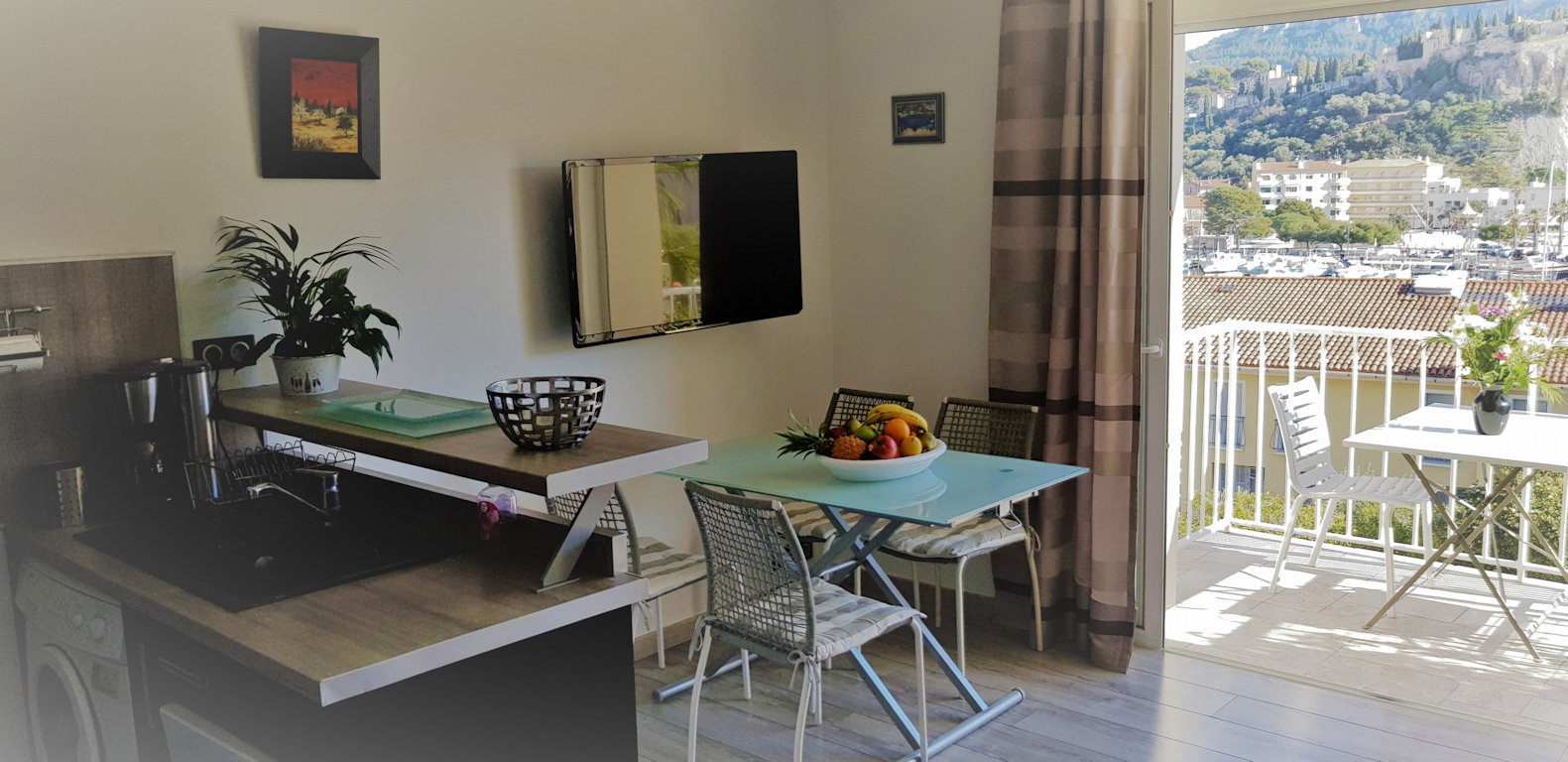 Plein sud, TRÈS JOLI T2 35 m² : belle vue sur le port, le Cap Canaille et le Château.