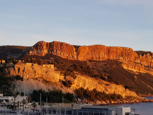 Nous proposons à nos hôtes qui arrivent en train de venir les chercher à leur arrivée en gare de Cassis . Nous faisons un petit détour par la route des crêtes afin de leur faire admirer Cassis du haut du cap Canaille ,