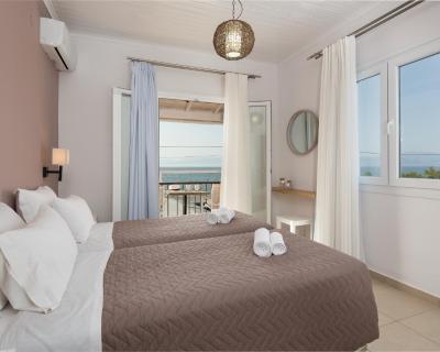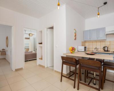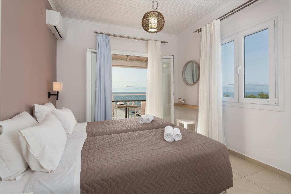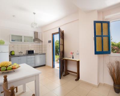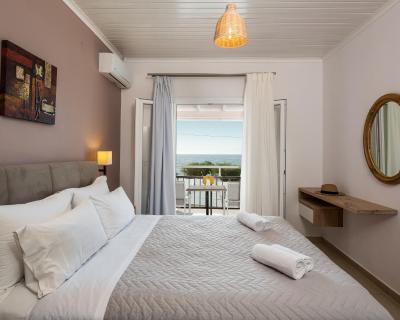 All air-conditioned studios and apartments open out to a balcony overlooking the pool and the Ionian Sea. Each includes a well-equipped kitchenette and a flat-screen TV with satellite channels.