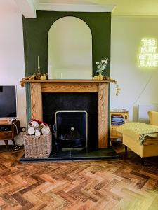 The holiday home is fitted with 2 bedrooms, a flat-screen TV with streaming services and a fully equipped kitchen that provides guests with a microwave, a toaster, a washing machine, a fridge and a stovetop. Towels and bed linen are offered in the holiday home. The accommodation offers a fireplace.